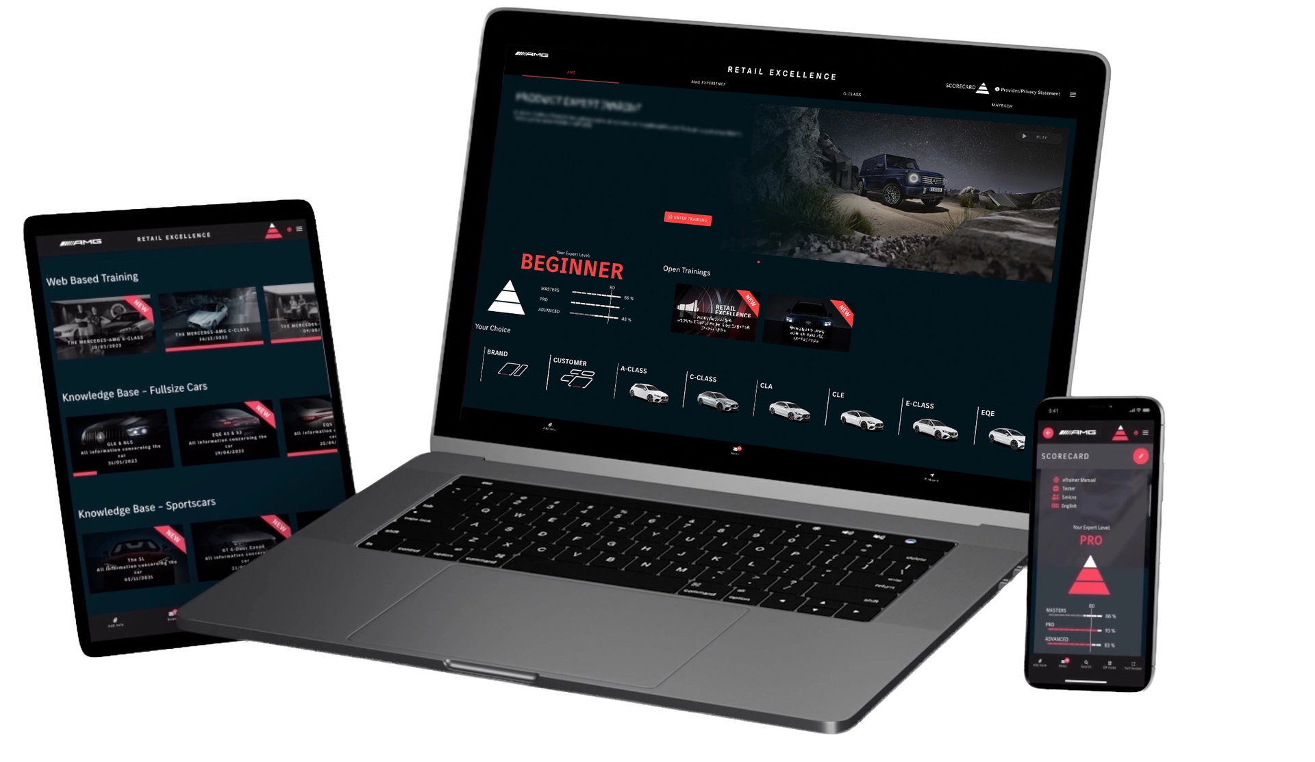 Mit der Scorecard wurde ein Ranking- und Levelsystem speziell für die Lernumgebung von Mercedes-AMG entwickelt. Sie umfasst drei aufeinander aufbauende Level, die sich hinsichtlich Anforderungen, inhaltlicher Tiefe und Interaktionsgrad steigern. Durch das Erreichen definierter Ziele können Teilnehmende schrittweise in die höheren Levels aufsteigen.