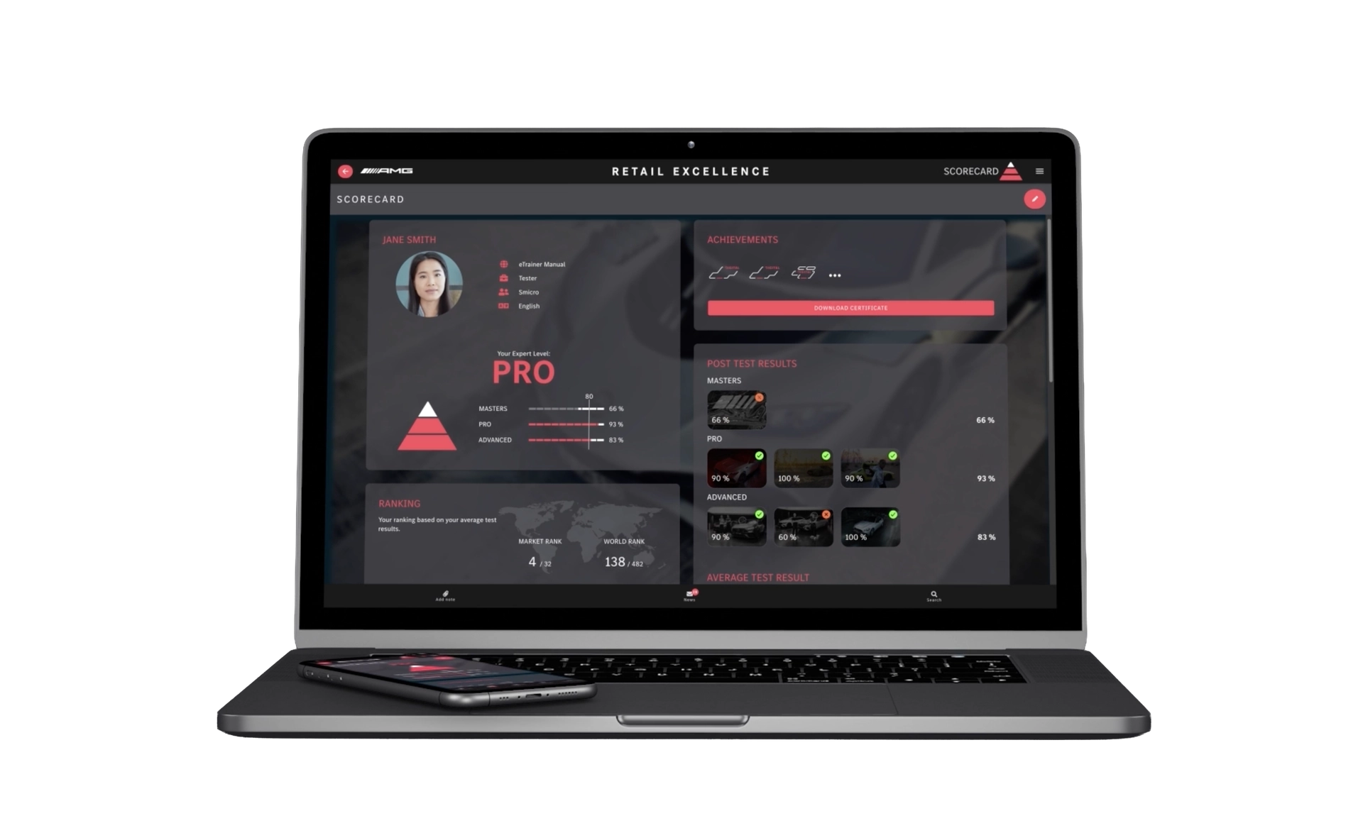 Das Gamification-System ist ein zentraler Bestandteil des Lernprozesses bei Mercedes-AMG und fördert motivierenden Wettbewerb unter den Lernenden. Die dadurch entstehende Motivation unterstützt eine nachhaltige und effektive Wissensvermittlung.